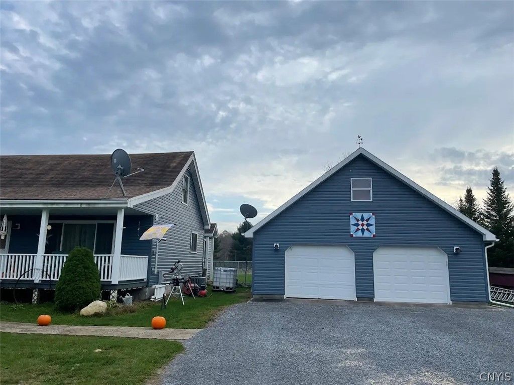 Welcome Home to this lovely quaint Adirondack setting! 4 Bedrooms, 2 Full Baths. Situated on a quiet road with plenty of space for all your toys and equipment. Bedroom 4 can also be home office or den. Must see all this Cape style home has to offer. Enjoy family meals in your Hickory Kitchen with granite counter tops, full appliance package, large family room for hosting holidays. 4.18 Acres make this irresistible with frontage on Alder Creek. Snowmobiling, hunting, fishing all on your own property. Pole building is 28 x 48 with concrete floors, detached garage is 28 x 30, includes pellet stove and a wood stove, water softener added, heated garage and lovely fenced in area for your fur friends. Enjoy the decks and outside fresh air! Call today for a private showing!