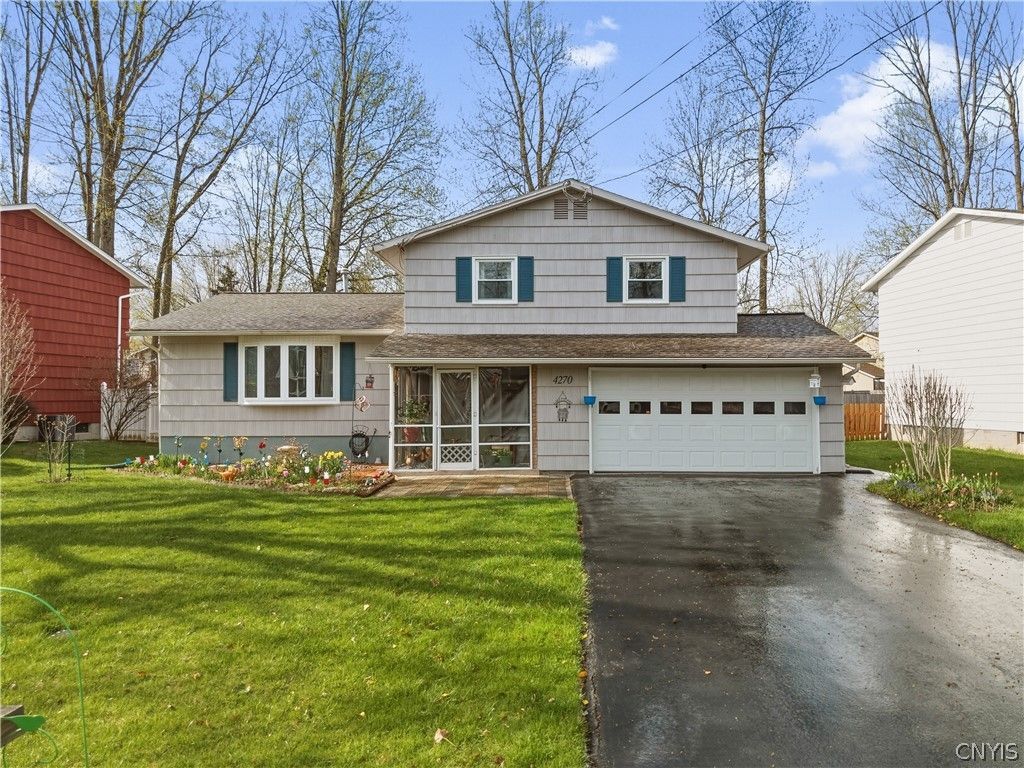 Welcome to 4270 Orion Path, a beautifully preserved split level located in the heart of Liverpool. This home has been meticulously cared for by the same owner for over 15 years, a testament to the quality and consistency of its maintenance over the years. Situated within the Liverpool School District, this 1967-built home offers a rare blend of established character and modern reliability, ensuring peace of mind for its next occupants. The exterior highlights thoughtful care and maintenance with several major capital improvements. A new roof and updated gutters were installed in 2010, followed by the replacement of nearly all windows in 2011 to improve energy efficiency. The property also features a new driveway installed in 2014-most recently sealed in June 2024-and a full exterior paint job completed in 2017, maintaining its crisp and inviting curb appeal. Inside, the home's mechanical and interior systems have seen significant modern upgrades. The comfort of the home is anchored by an updated furnace and air conditioning system (2019), along with a high-efficiency tankless water heater added in (2021). Aesthetic and functional touches throughout, from the refinished oak floors and gas Heat & Glo fireplace to the most recent update of a new dishwasher in (2025). This home is truly move-in ready, reflecting a decade and a half of love and care.